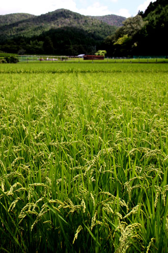 私が菜園をしている岩倉の村松辺りには小規模ですが棚田が広がっています、夏に入ってぐんぐん育った稲には早くも稲穂が出て実り始めています、この調子なら豊作間違いなしです。 棚田を写していたら前方に若い女性が二人、田圃で作業をしています、近寄ってみたら5月28日にアップしたヤングママさん達のグループの方で、安心安全なお米を目指した稲が順調に育って今が最終段階、イモチ病など病気にかからないよう稲に予防の薬を撒いているとのことでした。 殆ど手ずくりで米作りに挑戦されていますがこの調子なら無事にお米が実りそうです。素人さんばかりですがすごいチャレンジです。