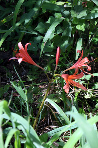 8月も今日で最後、暦の上では秋、朝晩涼しくなるはずなのに今年は猛烈な残暑、今日も35度の真夏日です。畑作業は汗まみれになりました。 少し離れた里山の麓を見ると秋の到来を知らせる彼岸花科の「キツネのカミソリ」が咲いていました。暑い暑い!と言っていますがやはり季節は秋に向かって進んでいる・・・・と実感しました。