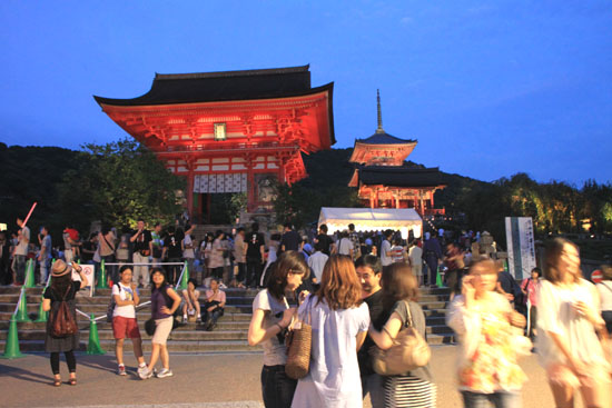 東山の清水寺で今日から16日まで恒例の「千日詣り」が始まりました。 千日詣りは本堂の観音さんの縁日です、この時に本尊の観音さんに詣でると一日の参詣で千日分の功徳が得られると伝えられていて多くの参拝者が訪れます。 私は暑い昼間を避けて午後7時から始まる夜の参拝に行きました、昼間の熱気が少し残っていましたが境内をふきぬける風が気持ちよく楽しい参詣になりました。