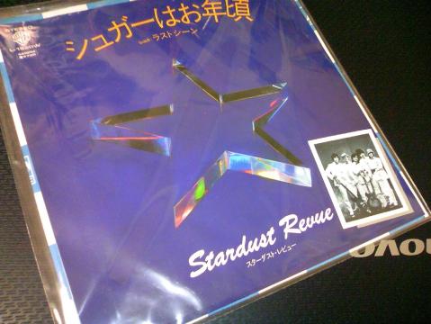 こんばんは!スターダストレビューです! 僕らのデビューシングル【シュガーはお年頃】聴いてください! 張り切ってどうぞ~!!デビューアルバム…LP盤をご好意で譲っていただきました。いいなぁ…この大きさ。帯に書かれたキャッチフレーズ。いいですなぁあと1ヶ月で、デビュー30年!LP盤が届いて、大事に眺めながらお奉行(夫)と話した。 奉 「1981年あたりってカッコいい人たちもいたよね~。」 ワ ル 「それ…どういう意味?」 奉 「で・でも、その当時の人たちって、ほとんど原型とどめてないじゃん。 スターダストレビューはすごいじゃないですか!」………結果的には褒めていただいたんだ…ろうか うれしなつかしおもしろたのし。だからブギウギ。心ワク・ワク、胸騒ぎ 30年間、ず~っと胸騒ぎ(笑)しているスタレビ兄貴が大好きだ~