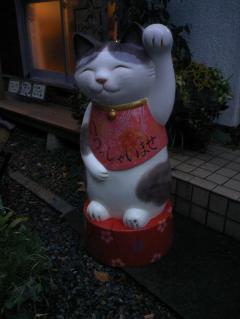 あいにくのお天気。晴れたら出かけたいところがあったんだけど、残念ながら雨模様天気のせいにしてはお空の神様がお怒りになるかもしれないけど…いいふうふのひなんだけど、天気のせいでケンカ勃発狭い家だけに…ちょっと空気が重苦しくなったときに逃げるところがないんだなぁ。そだ。はがき出さなくちゃ!大事な任務を思い出して歩いて5分くらいのポストへ外にでると雨はあがって雲は切れ始めてなんとなく明るくなっていた。雨上がりの空気は少しひんやりしていておいしくて好きだ。おかげで気分は晴れやかになってきた任務遂行しにもどり…「雨、大丈夫そうだから散歩でも行く?」とお奉行(夫)を誘ってみた。いつもの散歩コースを歩くことにするが…歩き始めてすぐにまた振り出したでもま…傘さしての散歩もいいもんかも。湖畔沿いの自転車道の並木はすっかり紅葉し、雨でだいぶ落ちて道を彩っている。この時間、お天気がよければたくさんの人で賑わっているんだけど今日は私たちだけ。いつも挨拶するさんはご機嫌麗しく毛づくろいでご自分では届きにくいところのマッサージを許していただいた帰り道で気になっている一軒家の喫茶店(カフェほどあか抜けていない)にはフェイスの看板猫が! 奥にいらっさるふらいんぐポストきゃっとくんがまたいい味だしてる~に帰るころにはバトルったことなんか忘れてたわ。たいしたことではなかった、ということね。お散歩とにゃんこさんのおかげですわま、結果オーライのいいふうふのひだったわよ。
