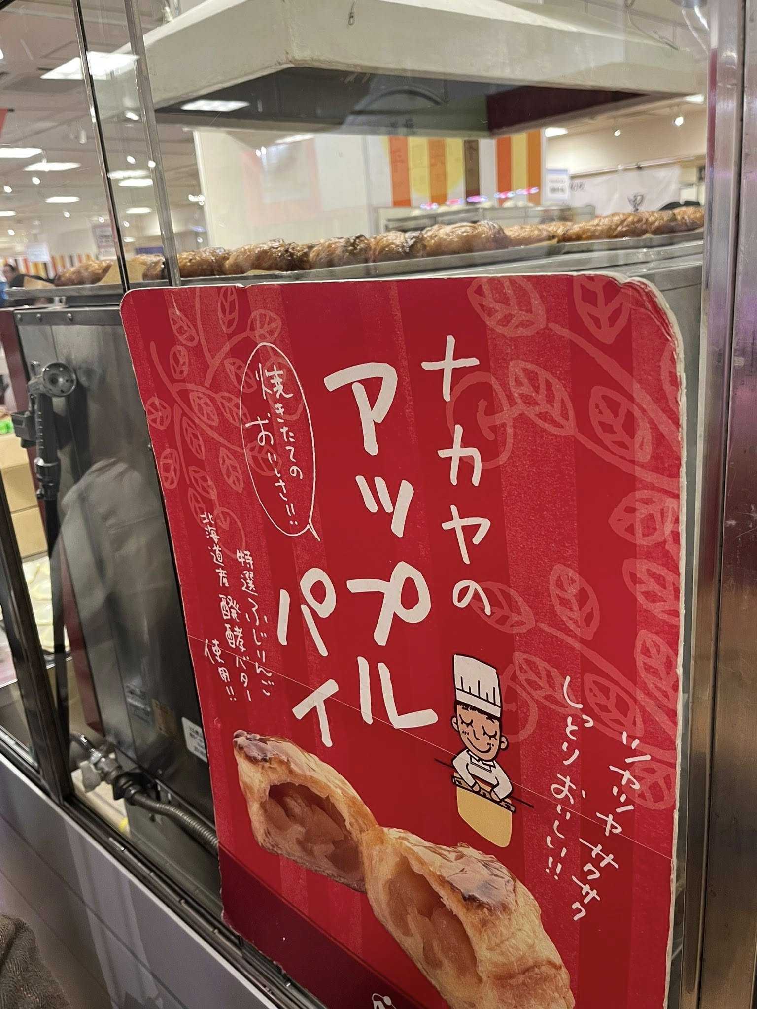 海外旅行レポの途中ですが・・タイムリーなネタもちょいちょい挟んでいきますね(;^ω^)11月12日から神戸阪急ではじまりました~「秋の北海道物産大会」今回のお目当ては!砂川の”ナカヤ菓子店”数年前、うめだ阪急に来て以来!神戸は初!です!うれし~い!!!!!!実演♪まだほんのり温かい(*´艸`*)というわけで3個買って、1つは会場のイートインスペースでいただきました発酵バター香るさくさくのパイと優しい甘さのリンゴが!ほんとに美味しい♪次はいつ食べられるかなあ?????最近、インバウンドの影響なのか北海道は航空券もホテルも高くて・・とほほほほ・・・