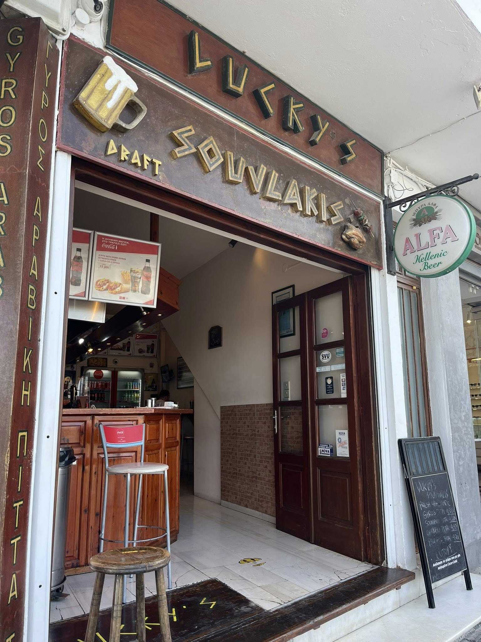 サントリーニ島でのランチは・・・夏の繁忙期には行列ができるという人気店「ラッキーズ・スブラキ」オフシーズンの遅めのランチ・・で行ったら先客1組だけでした~ギリシャのファストフード的な”ギロピタ”という料理です。ピタパンに、ケバブ、サラダ、ポテト、ヨーグルトソースがたっぷりでめちゃヘルシー。だけどハーブが効いてて食べ応えはしっかり!コーラと、ハーブが効いたフライドポテトつき。めちゃ美味しかった~!(*´▽`*)!そして街散歩。階段と坂道しかないけど・・・とにかく絶景で歩くの楽しい!薄手の長袖でちょうどいい気候・・・だったけど歩きまくって、冷たいの食べたいね・・とジェラート屋さんに。ギリシャらしいフレーバーも多くて私はバクラヴァ味のジェラートを。ミルクジェラートの中に、細かく砕いたバクラヴァが入っててさくさくとナッツ感がめちゃ美味しかったし絶景を見ながら食べたら幸せしかなかったわあそしてここも・・・ネコ天国。子猫に近づいたら・・・シャー!って言われちゃったけどそれでも可愛い(*´艸`*)