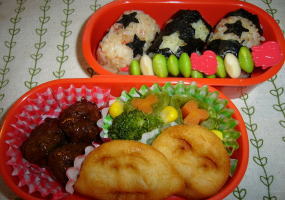 ++ 幼 稚 園 の お 弁 当 No.3 ++- キラキラ★俵おにぎり★弁当 -今日のメニュー俵おにぎり(鮭ふりかけ&卵ふりかけ)枝豆&大豆串人参ロールキャベツ&ブロッコリー&コーンアンパンマンポテトミートボールイチゴヨーグルト(画像UP忘れた(≧д≦*))今日は本当は遠足の日でした。でも、大雨で中止(т。т;)で午後保育になりました。急遽、メニューを変更して作ったの。でも久々だったからチョット緊張しちゃった!おまけに、メニュー削りすぎたかも・・(* ̄m ̄)プププなんか見た目淋しいでしょ~┐('~`;)┌そうそう、しかもイチゴヨーグルトを入れて写すの忘れちゃってるし・・・画像UPしている時に、「ん??(゜_。)?何か忘れてる・・・」「あっ!w(゜o゜)wヨーグルト!」ってな感じで思いだしました。そして、幼稚園から帰ってきて・・・久しぶりのお弁当が嬉しかったらしく、「ママぁ~お弁当キレイに食べれたよぉ~!みてぇ~」って。「どれどれ・・・おっ!w(゜o゜)wお野菜もキレイに食べてるじゃ~ん♪すご~い!ママ嬉しい♪」って言っていたら・・・人の話は聞かず、早速バスで遊んでいる尚一郎でしたぁ~もぉ~褒めているんだから最後まで聞いてぇ~~~~~~(/ ̄▽)/2005.05.19++ 幼稚園のお弁当☆バックナンバー ++ FCセブン┏┏┏┏┏┏┏┏┏┏┏┏┏┏┏┏┏┏┏┏┏┏┏┏┏┏┏┏┏┏┏┏┏┏┏┏ ++ ママファッション5/16更新!++ *************************************** いつもありがとうございます。(^^ゞ 皆さんのクリックで上位に上げてやってください! ←新着サイトに載ってます。 今日も応援クリックありがとうございました。(^^ゞ****************************************