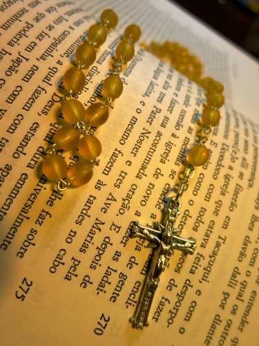 <フロイス「日本史」第二部三十章(松田毅一訳、中央公論社「第五十二章」)より>『毎朝教会はミサに与りに来る人たちで溢れ、夕刻にもふたたび教会を訪れて、聖母の連禱および平素の祈りを唱えた。一同はミサ聖祭の後、主禱文(パーテル・ノステル)と天使祝詞(アヴェ・マリア)を三回、日本の改宗のために声高々とラテン語で唱えた。午後の連禱の後でも同様の祈りを唱えた。 四旬節の金曜日には、我らの主キリストの御受難の玄義についての説教がなされた後、男女を問わず全員が鞭打ちの苦行を行った。この苦行はミゼレレ・メイが歌い終えられるまで続けられた。』<フロイス「日本史」第二部百章(松田毅一訳、中央公論社「第六十一章」)より>『司祭らを乗せた二隻の船は室を出てから寄り添うようにして航海を続けたが、ある人影のない浜辺に一同は降り立つと、夕刻、一所に集まって聖母の連禱を唱え、その後で日本の習慣に従い、主禱文(パーテル・ノステル)と天使祝詞(アヴェ・マリア)を三回ずつ祈った。』「三回」というところからロザリオ(コンタツ)と関係するかどうか、良くわかりませんが、”Pater noster””Ave Maria”が唱えられているところから右近領のキリシタン遺物のコンタツとの繋がりはある、と感じてしまいます。また鞭打ちの鞭も千提寺の遺物の中にあります。また、”Miserere Mei Deus”を「歌った」とあり、”Pater noster””Ave Maria”は「唱えた」とありますが、これらのフロイスのポルトガル語原文(P.José Wiki:編)を見ると、どちらも”rezão”(rezar)という単語で書かれています。なぜ一方は「歌った」で一方は「唱えた」と訳されたのか。フロイスの使っていた400年前当時のポルトガル語の語彙にその手掛かりは隠されている様です。