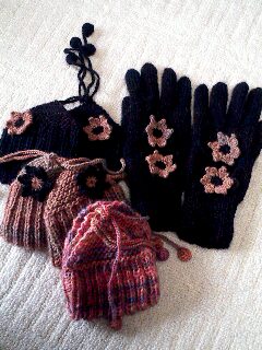 結構時間がかかりました。でも玉の時の糸は好きでしたが編んでみるとイメージが違い、一歩間違うと路上で生活しなくちゃいけないようなイデタチに見えますと息子の意見。言われてみればそうだ・・・・・あ~んショック!時間かかっているので出来上がって着るのを楽しみに編んだのに。アルパカが入っているので、とてもかるくて暖かい。毛糸代は安いときに買ったので3,980円でしたニットの講師をしているお店でかわいい毛糸が発売されました。ハッピーになれる色合いの5本指の手袋を編んでます。もう少しで出来上がり。色が純色でないのが気にいりました。色の種類が多くて色々な案がうかんできますこれが出来たら靴下を編んでみようかと思ってます。講師になるまでは、自分の好きなものしか編まなかったけど(手袋は面倒です)聞かれたときにすぐに対応できるように作り慣れておかないとね