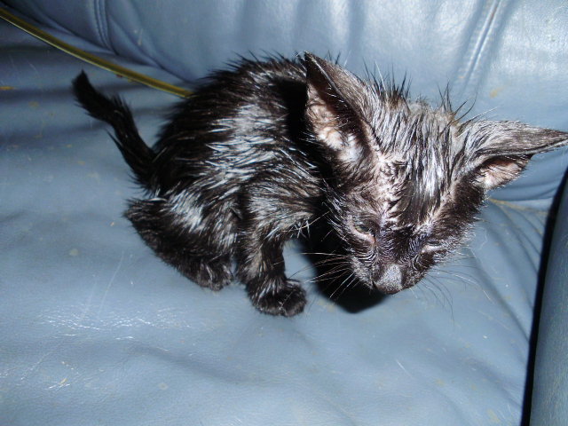 の状態の子猫が、迷い込んできた 風呂で2度洗い