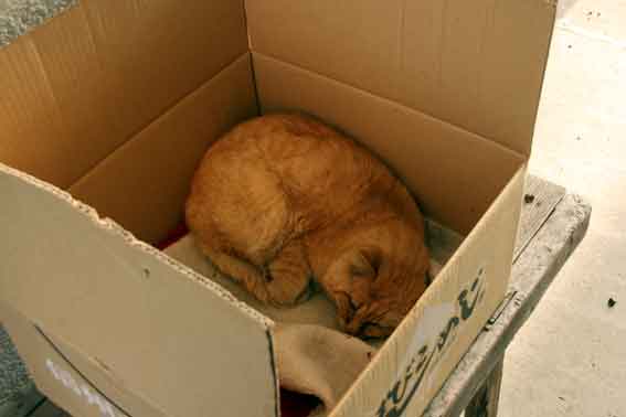 おはようございます♪今朝は午前5時半より仕事の準備を始めました!!東日本大震災が起こってから、新しい週が始まります。東北地方は鉄道も高速道路も使えない状態です・・・。早くライフラインが回復しないと、復旧に支障が出てきます!!ニュースを見ていると「計画停電」で電車も停まるのですネ・・・(@_@;)!!公共交通機関は大丈夫かと思っていたのですが・・・。日本の経済にも大きな影響は必至です!!私は印刷会社に勤めていますが・・・3月は忙しい月に当たるのですが、首都圏の方の影響が地方にまで出てくるのでしょうか??大変です・・・!!今朝のニャンコは、昨日の朝の様子です!!ダンボール箱の中でマスクとチョビとアズキが仲良く寝ていました!!お前たちは幸せだネ・・・。