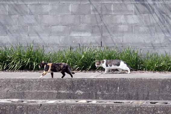 おはようございます。今朝は午前5時起床、「トライアルイラスト」を描き始めました!!まだ下準備の段階で、イラストボードにラフスケッチを始めた程度です♪3月も今日で終わり・・・早いものです、今年ももう3か月が過ぎようとしています。今朝の写真は・・・別荘に帰るミケです!!後ろから隣りのネコがついて行ってます!!「お~い・・・ミケさん・・・待ってよ・・・!!」「ねぇ・・・遊びに行って・・・いい?!」「ジャイアンはいつもうちのニャンコ達をいじめるから・・・ダメ!!」「えぇ・・・ダメなの・・・」「もういじめないから・・・」「早く帰りなさい!!」なんちゃって・・・(●^o^●)♪