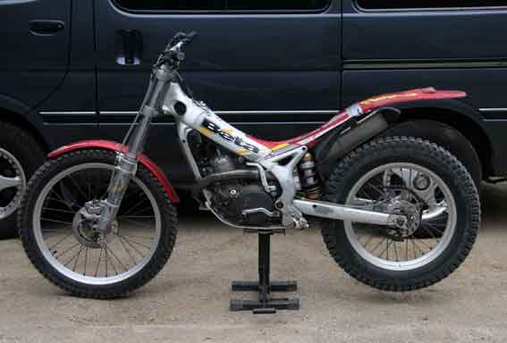 このオートバイは「トライアル」というモータースポーツ用のマシンです♪とってもスリムなオートバイで、余分なものはついていません(笑)!!「トライアル」とは、指定されたコース(区間)を走り、いかに足を付かずに走り切れるかというモータースポーツなんです♪ゴルフでは、第1ホール・・・と決められたコース(ホール)を廻って、何回でホールインするかを競いますが、トライアルでも何回足を付いたかで減点が加算され、その合計点の少ない選手が優勝となります♪今、紹介している四国選手権第4戦愛媛大会は、8セクションと8つのコースがあり、これを3ラップします!!コースを走って1回足を付くと「減点1」、2回足を付くと「減点2」、3回以上は「減点3」、エンジンストップ、コースアウト、タイムオーバー(1分間ルール)などが「減点5」となります。1回も足を付かずにコース(セクション)を走り抜けると「クリーン」で「減点0」となります♪写真はイタリアの「ベータ」で250ccです♪このマシンもスリムですネ♪「ガスガス」です(*^。^*)♪ホンダHRCの「RTL」です♪4ストロークのエンジンです(*^^)vこちらは2ストロークエンジンの「シェルコ」です♪車重も70kg前後と、とっても軽く出来ています!!「すえドンのフォト日記」http://sueyasumas.exblog.jpに愛媛大会の競技の写真をアップしています♪こちらもよろしくお願いいたします(●^o^●)♪