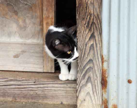 おはようございます♪月末、5月31日です!!今朝も午前5時に起床し、1時間トライアルイラストを描きました♪7月号に掲載予定ですが、今回は早めに送れるかな(笑)?!今朝も肌寒いです・・・。写真は台風の時のチョビです♪避難場所の納屋から顔を出していました♪「あれっ?!撮ってたの・・・!!」(●^o^●)♪
