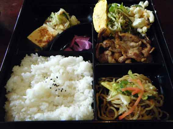 美馬市脇町の喫茶「プランタン」で「日替わりランチ」を食べました♪今日のメニューは「豚生姜焼き」でした♪左上、「冷奴」と「おひたし」です!!右上、「厚焼きたまご」と「野菜」、「豚生姜焼き」♪右下、「焼きそば」です!!「ブルーベリージャム」がかかっていました(●^o^●)♪浅田次郎さんの「プリズンホテル2秋」を読みながらの昼食です♪(●^o^●)♪