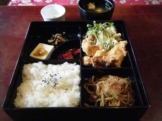 火曜日は美馬市脇町のプランタンで昼食をとる事が多いです♪仕事の関係で、お昼の頃に近くにいるからです(笑)!!「日替わりランチ」は「唐揚げ」と「焼きそば」でした♪デザートは「ヨーグルト」でした(●^o^●)♪今日は雨で、気温も25℃くらいで少し肌寒いくらいでした!!「ホットコーヒー」を飲みます♪(*^。^*)♪