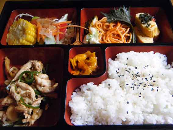今日、土曜日は仕事・・・!!しかも、夕方から打ち合わせが入り・・・帰りが遅くなりました・・・(笑)♪仕事があるだけ、ありがたいと思わないと・・・。私の住む四国は・・・不況が半端ではありません・・・(ー_ー)!!アメリカンステーションで昼食をとりました♪「日替わりランチ」は、「鶏肉とピーマンの生姜焼き」です♪ここの「野菜サラダ」が・・・これまた美味しいのです♪私はいつも「野菜サラダ」を食べきってから、メイン料理に進みます♪「ウリ」が付いていました♪メインの「鶏肉とピーマンの生姜焼き」です♪「ピーマン」が嫌いな人も多いかと思いますが・・・私は好きです(笑)♪結構「青臭い」野菜が好きなんです(^◇^)♪東京時代・・・いや、東京で仕事をしていた時代(笑)、埼玉県川口市に住んでいた時(荒川を挟んですぐ隣は東京都です)、西青木のアパートの近くに中華料理店があって、週末はそこで「チンジャオロースー」を食べていました(笑)♪四国・徳島時代は・・・「チンジャオロースー」なんて、しゃれた料理はありませんでした・・・(ー_ー)!!埼玉県川口市へ行く機会があったら・・・また「チンジャオロースー」を食べに行きたいと思いました♪サブの料理は「だし巻玉子」と、「きんぴら」と「肉じゃが」♪今日も美味しくいただきました♪(●^o^●)♪