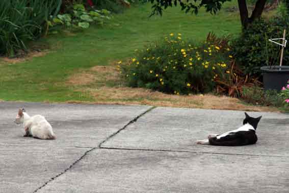 おはようございます♪土曜日の朝・・・しかし私は仕事で出勤となります・・・。仕事柄、三連休は避けるようにカレンダーが組まれています・・・。今朝も午前5時に起床、せっせとパワーポイントの作成をします!!欲張り過ぎてもいけませんし、内容が少なすぎてもいけません・・・。難しいです・・・(ー_ー)!!今朝のニャンコは、シロ親子です♪夕方になると、我が家のニャンコ達が集まってきて、夕涼みをしています♪ほほえましい光景です♪今日も暑い1日となりそうです・・・!!(●^o^●)♪