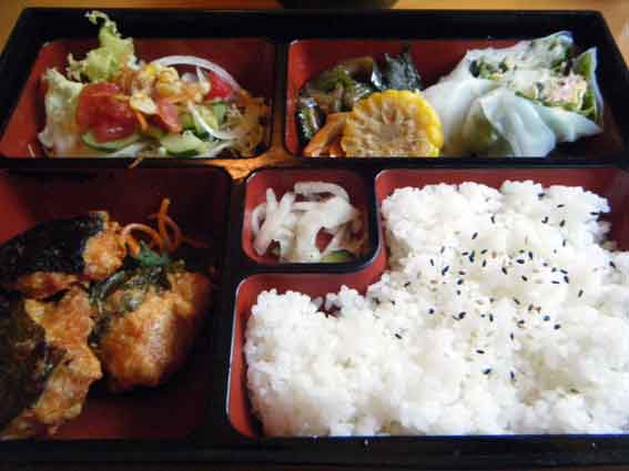 今日の午前中は、徳島県西部、三好市池田町まで仕事で行きました♪徳島県西部へ行くと、昼食は「菊花楼」が私の定番なのですが・・・(笑)!!予定より早く終わったので、吉野川市山川町まで戻って来ました!!いつものアメリカンステーションで昼食をとりました(●^o^●)♪「日替わりランチ」は「鶏のからあげ」です(*^^)v今回の「からあげ」は、香葉がまかれていました♪いつもアイデアたっぶりです(*^。^*)♪これも美味しかった(*^^)v食感が最高です(#^.^#)!!美味しい料理を食べて、この夏を乗り切らないと・・・。夕食は・・・野菜中心・・・なもので・・・(笑)!!(●^o^●)♪