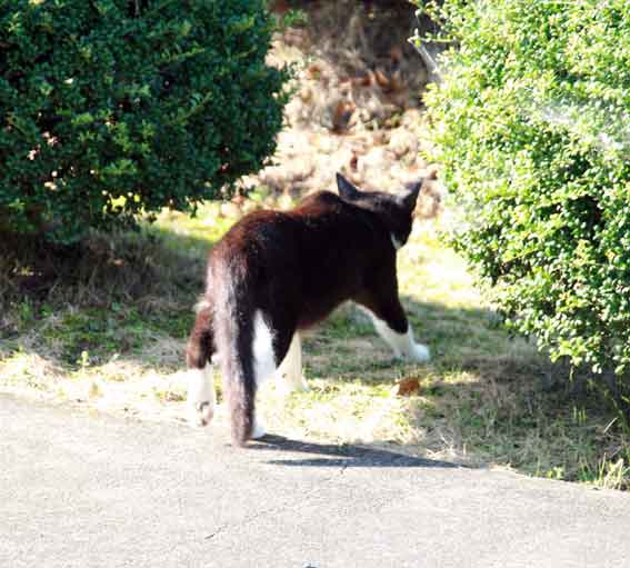 おはようございます♪昨夜は扇風機をつける事もなく、少し窓を開けただけで過ごせました!!今朝も午前5時に起床し、ラジオを聴きながら「鉛筆画」を描いていたら、東京は18℃だったと言っていました!!湿度の方は高めですが・・・。今朝のニャンコは、野生児のマスクです♪このところは涼しくて、マスクも過ごしやすそうです!!なにせ・・・黒い部分が多いものですから・・・(笑)♪茂みの中の空間が、隠れ家になっています!!週末の金曜日ですが、月曜日が祝日で、火曜日は台風の接近・・・あっという間に金曜日・・・。今日は暑くなるのでしょうか・・・(ー_ー)!!月末も近づき・・・忙しくなりそうです・・・(*^。^*)♪