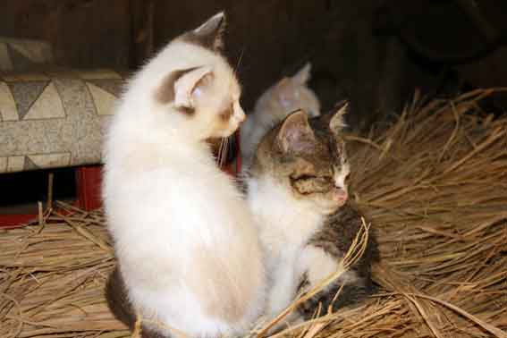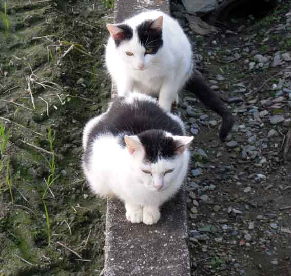 おはようございます♪寒い朝です・・・。今朝は午前5時からトライアルイラストを描き始めました♪11月もあと10日・・・忙しい日が続きそうです(*^。^*)♪今朝のニャンコは・・・納屋の中で撮ったアトムとニューフェイスの2匹です♪3匹の子猫が生まれたのですが・・・もう一匹は警戒心が強く・・・逃げてしまいます!!一番身体が大きく・・・しっかりとしています♪面白い顔をしています・・・(笑)♪(●^o^●)♪