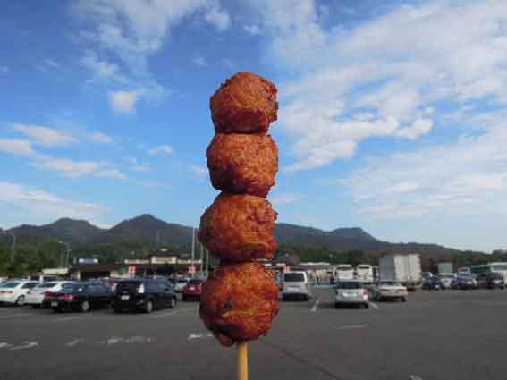 11月12日(土)、午前7時前に自宅を出て、午前9時半頃、山陽自動車道の「福山SA」へ休憩で寄りました♪ここに寄ると・・・食べたいのが人気No.1の「尾道ラーメン」なのですが、まだ時間が早かったので「手にぎりタコ棒」をいただきました♪一串300円です♪タコがプリプリししていて、とっいも美味しかったです(^◇^)♪高速のサービスエリアに寄ると・・・美味しいものがいっぱいで・・・困ってしまいます(●^o^●)♪ここで運転をかわり・・・私が広島県の「宮島SA」まで運転します♪「山陽自動車道」と聞くと・・・瀬戸内海を眺めながらの海岸コースを想い浮かべてしまいますが・・・実は大半が山の中です♪最高地点は海抜375mです!!中国地方の中心都市の広島の中心部を抜けたところに「宮島SA」はあります♪「広島県」と言えば・・・「カキ」です・・・(●^o^●)♪広島と言えば・・・「カキ」です♪一皿2個入り420円の「焼きカキ」を二皿買い、4人で1個ずついただきました♪「海の味」がしました(●^o^●)♪このあとJR小野田線に乗りに行き(私だけ)・・・午後2時前に「小月IC」を降りました♪そして少し遅い昼食をとったのでした(*^^)v