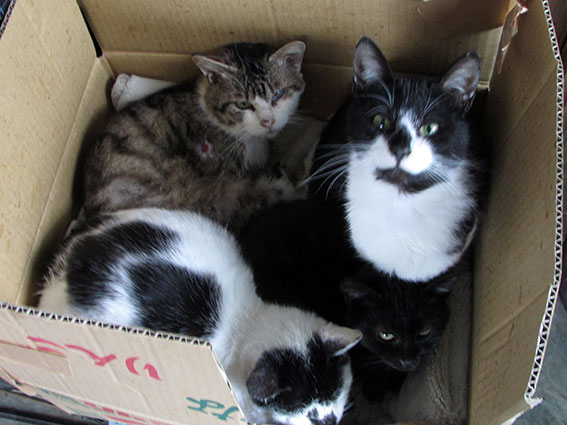 おはようございます♪風の強い朝となりました♪天気予報では気温が下がると言っていますが、まだそれほどは下がっていません!!今朝のニャンコは、ダンボールで仲良く眠るハナ・シロ・チビトラです♪ ハナちゃんです♪ シロちゃんです♪ チビクロです♪年度末の3月、忙しい1週間となりそうです!!(●^o^●)♪