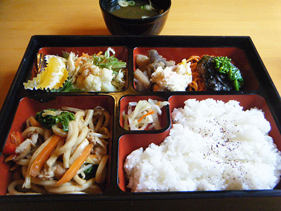 肌寒い朝でした!!今日は吉野川市山川町のアメリカンステーションで昼食をとりました♪「日替わりランチ」は、「しょうゆ焼きうどん」と「シソ巻きハンバーグ」でした♪ 「しょうゆ焼きうどん」です♪(●^o^●)♪ 「シソ巻きハンバーグ」です♪左は「おから」と「ごぼう・こんにゃくの煮物」です♪\(^o^)/ アメリカンステーションです♪ 正面の左が剣山、右が次郎笈です♪剣山は・・・太郎笈といいます!!(●^o^●)♪