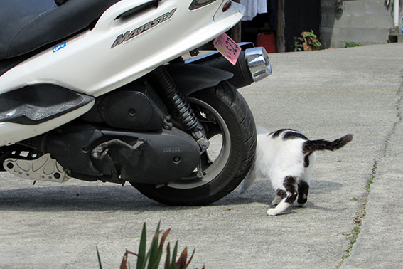 おはようございます♪こんなかっこうで・・・失礼します・・・(笑)!!暖かい朝です♪でも・・・週末は寒くなるのかなぁ・・・!!今、天気予報でみたら・・・月曜日から気温が下がっていますネ・・・。日曜日は「徳島マラソン」です♪私は高知で開催されるトライアル四国選手権第1戦高知大会へ行きます♪晴れて、暖かそうだったら・・・スクーターでツーリング・・・なんて♪ 今朝のニャンコはハナちゃんです♪昨日の朝のあいさつです(笑)!! 高校三年生の夏、初めての一泊ツーリングが高知でした♪その時のオートバイは原付の50cc、ホンダ・ノーティダックスでした♪さて・・・車で行くか・・・スクーターで行くか??(●^o^●)♪