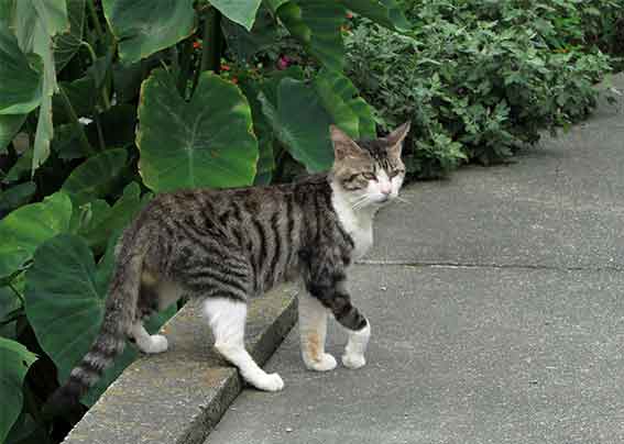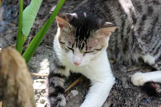 おはようございます♪台風の影響で、雨と風が強くなってきています!!今朝は午前5時半の起床、そろそろ次の鉛筆画の作成にかかりませんと・・・!!今朝のニャンコはトラ太です♪ サトイモ畑で涼んでいます♪台風の影響・・・外猫の我が家のニャンコ達は・・・大変です・・・!!被害の無い事を祈っています♪