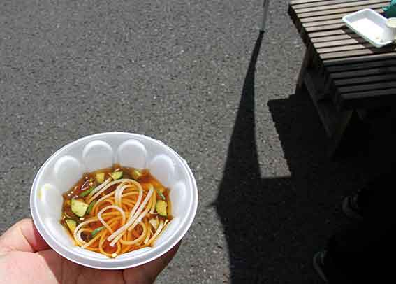 8月13日の高越山です♪ 昼食は、美馬市脇町のセルフうどん「和ぁさん」へ行きました♪セルフですが、手打ちの本格的なお店です♪午前11時半前に到着しましたが、広い駐車場はほぼ満杯でした♪ 「冷かけうどん」(小)です♪「ちくわ天」と「カレーコロッケ」を一緒にいただきました♪茹でたてのうどんを冷水でしめて・・・冷たい出汁をかけています♪暑い時期には最高のうどんです\(^o^)/