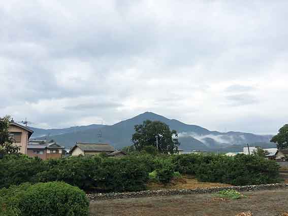 京都府京丹後市峰山町に来ています♪丹後半島の真ん中あたり、盆地の町です♪ビジネスホテルの4階から見た西の景色です♪たぶん、写真の右の山に登ります!!しかし・・・暑そう!!