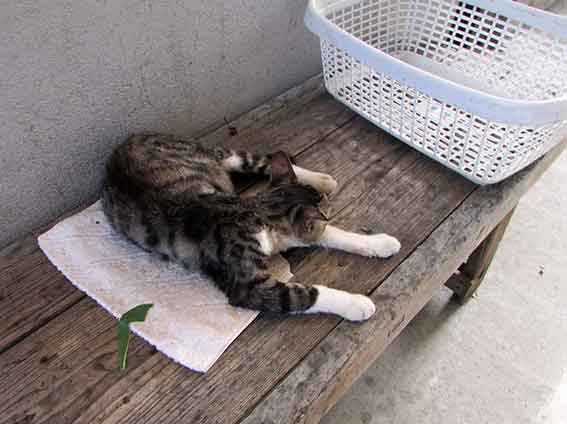 おはようございます♪日曜日の朝、午前6時10分にゆっくり起床!!大きな仕事も一段落し、鉛筆画もなんとか編集部へ!!ひさしぶりにゆっくりとしています(●^o^●)♪今朝のニャンコは・・・2階の部屋から下を見たらいたニャンコです♪ プッ・・・!! 今日は美馬市美馬町の「伊射奈美神社」で開催される古事記のイベントを覗いてみようと思っています♪両親と親戚のおばさんも連れてドライブです♪(●^o^●)♪
