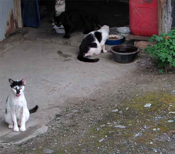 おはようございます♪雨音で目が覚めました!!ザーザーと音をたてて、かなりの勢いで降っています!!午前4時50分起床、鉛筆画を描きます♪もうあと少しで完成です\(^o^)/今朝のニャンコは、納屋の前でくつろぐニャンコ達です♪エサを食べるふじこに、チョコンと座るシロ、暗闇にチビクロが隠れています♪ シロとチビクロがくつろいでいます♪今、編集中の本がいよいよ下版!!2週間後には完成しますヽ(^o^)丿顔はブサイク(笑)ですが・・・シロはふじこの子供です♪チビクロは・・・迷いネコ・・・!!(●^o^●)♪