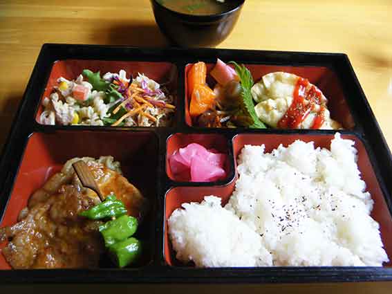 今日も・・・降らなかった・・・。暑かったのですが・・・少しだけマシな感覚が・・・(笑)♪ 吉野川市山川町のアメリカンステーションで昼食をとりました♪「日替わりランチ」は、「豚肉のみそ炒め」と「揚げ出し豆腐」でした♪ 「豚肉のみそ炒め」です♪私・・・濃い味は苦手なのですが・・・ここのはあっさりしていて大丈夫です\(^o^)/ 「揚げ出し豆腐」と「酢の物」♪ここの昼食を食べていたら・・・夏バテはないです\(^o^)/