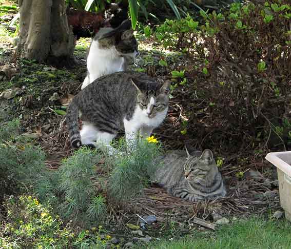 おはようございます♪月曜日の朝、午前4時40分に起床、仕事をします♪どうも最近は早朝でないと仕事がはかどりません・・・。今朝のニャンコはあずき一家!!手前からトラちゃん、トラオに、後ろはダンディくんです♪トラちゃんは、クロと姉妹で、トラオとダンディとフジオが兄弟です♪あれ・・・トラ太が追って来ました♪トラ太はシロ母さんの子供、あずきの弟になります♪ あずきです♪今日は朝から納品の仕事が山積み・・・。超忙しい一日となりそうです!!猫の手が借りたい月末です\(^o^)/