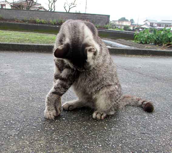 おはようございます♪疲れからぐっすりと眠りました!!午前5時20分に目が覚め、5時30分に目覚ましをセットしていたので、あと少しと寝たら・・・次にめが覚めたのが5時40分でした・・・危ない・・・!!ふくらはぎがパンパンです!!昨日は午前6時に、JR高梁市近くのホテルを出てトライアル会場へと向かいました♪高梁駅前のローソンに寄ったら、ニャンコが雨宿りしていました♪思わずシロ母さんを思い出しました(●^o^●)♪ 朝食の買ったサンドイッチのパンを少しやりました♪おなかを空かしていたみたいなので・・・!! さあ月曜日です・・・頑張って仕事行きましょう!!来週の日曜日は、林博章先生の新刊「剣山山系の世界的農業文化遺産」の出版記念パーティーです♪四国選手権トライアル第6戦愛媛大会です♪私は仕事で行けなくなってしまいました!!<m(__)m>