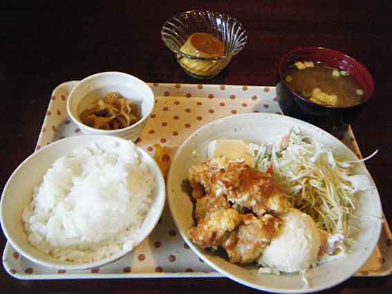 今朝の高越山です♪快晴です!!関東・東北地方では・・・大雨というのに・・・。吉野川市山川町のアメリカンステーションで昼食です♪「日替わりランチ」は、「チキンカツ」と「豆腐のベーコン巻きステーキ」でした!!「チキンカツ」です♪サクサクです(●^o^●)♪ 「豆腐のベーコン巻きステーキ」です♪美味しくいただきました♪ 吉野川北岸、阿波市から見た高越山です♪(●^o^●)♪