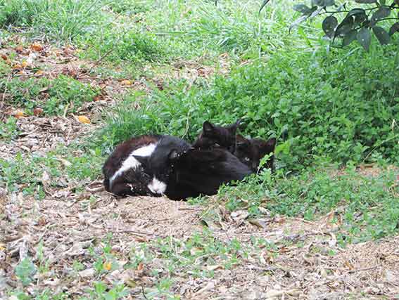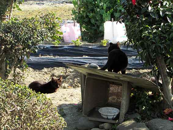 おはようございます♪日曜日の朝、午前5時30分の起床です!!今日は愛媛県四国中央市川之江の「明和トライアル場」で、四国選手権第1戦愛媛大会が開催されます♪今朝のニャンコは、庭の餌場の近くが縄張りのクロネコ達です♪ ふじおもいつも一緒にいます♪天気はまだ曇り空です♪雨が降るのは確実です・・・会場へ車で行くか・・・スクーターで行くか・・・まだ迷っています・・・ 雨になると・・・ニャンコ達もたいくつです・・・雨があまり降らない事を祈っています♪(●^o^●)♪