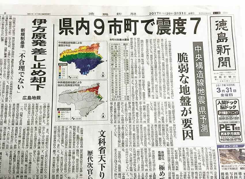 今朝の徳島新聞・・・ショッキングな記事が・・・!!中央構造線地震 県予測県内9市町で震度7私の住む徳島県吉野川市は、すぐ北を日本最大級の断層「中央構造線」が東西に走っています!!吉野川市は震度6強の予測・・・備えあれば・・・ヾ(≧▽≦)ノ夜は暖かかったのですが・・・日中はだんだんと気温が低下・・・寒かったです(≧▽≦)!!山間部では・・・なんと雪も・・・3月も今日で終わり・・・午前中は、つるぎ町貞光まで行きました!!と、なると・・・昼食は・・・ここ!!ギターが・・・??ここはカレー専門店「インドラ」です(●^o^●)♪「ハンバーグカレー」です♪もちろん辛口ですヽ(^o^)丿美味しくいただきましたヽ(^。^)ノ