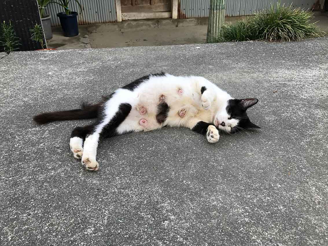 おはようございます♪8月26日土曜日、午前6時起床!!どんよりとした曇り空です・・・。今にも降り出しそう・・・!!天気予報は、午前中は雨で、ごごから回復するとのこと!!今日は仕事が休みです( `ー´)ノ今朝のニャンコはあずきです♪朝、勝手口の近くでくつろいでいたあずきです♪午前中は買い物に・・・午前6時56分、今音をたてて雨が降り始めました・・・。あずきのおっぱい・・・飲んだあとが・・・子ニャンコがいるのか??(^^♪