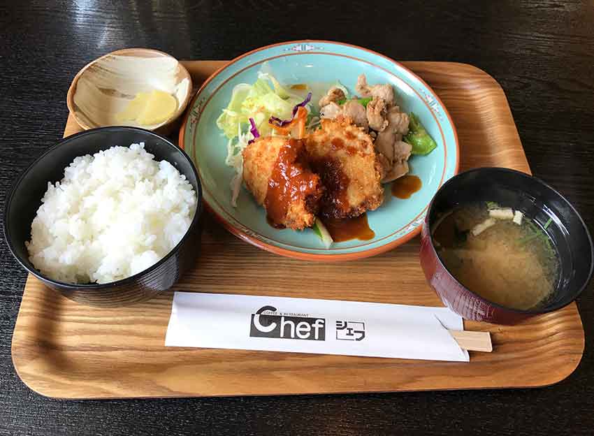 昨日の夕焼けです♪今朝の高越山です♪午前10時頃からお昼まで雨が降りました!!今日の昼食は吉野川市山川町のカフェレスト「シェフ」でいただきました♪「日替わりランチ」は、「チキンカツカレー丼」と「スパゲティサラダむでした(#^.^#)♪「チキンカツカレー丼」です♪カレー好きの私にはうれしいメニューでした♪「スパゲティサラダ」です♪美味しくいただきました(^_-)-☆