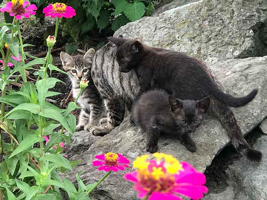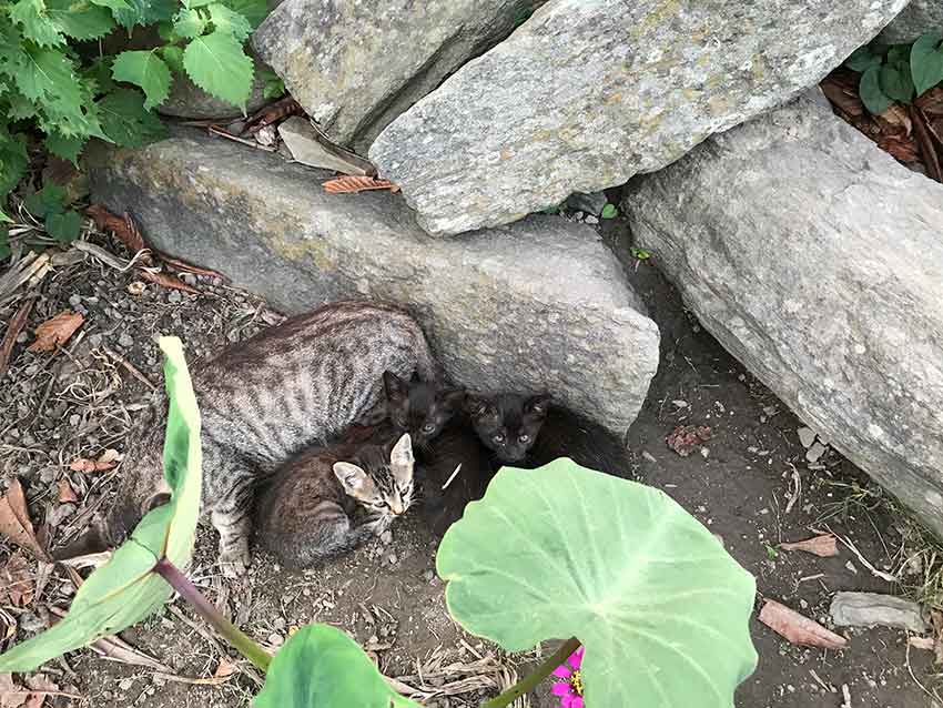 おはようございます♪昨夜は「阿波踊り」見学で遅くなりました!!今朝は午前5時30分の起床です!!今日は愛媛県四国中央市川之江の明和トライアル場で、四国選手権トライアル第6戦愛媛大会が開催されます♪午前7時30分には、スクーターのヤマハ・マジェスティ125で会場へ向かう予定です♪今朝はトラ母さんとこのニューフェイスです♪敷地の一角、古い家の時の庭石を積み上げた場所が、子ニャンコ達の住み家です♪昔の家は庭に青石が飛び石のように敷かれていました!!昨日は涼しい一日でした♪昨夜も肌寒いくらい・・・今朝も涼しいです♪少し曇っていますが・・・天気はまず大丈夫でしょう!!( `ー´)ノ