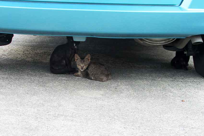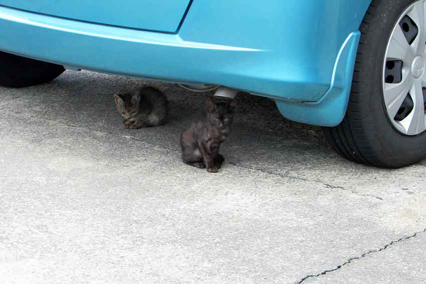 おはようございます♪今日からお盆休みとなりました!!暑い・・・熱帯夜・・・昨夜は午後11時に扇風機のタイマーをセットして就寝・・・寝苦しさに目が覚めたのが午前0時過ぎ・・・汗びっしょり・・・また扇風機のタイマーをセット・・・湿気が充満している感じ・・・子ニャンコ達・・・相変わらず車の下を占領中・・・今日はいろいろと雑用をこなす予定です!!髪の毛を切ってしまいたい・・・とにかく暑いから・・・ニャンコ達も暑いでしょうネ!!ここは・・・危険・・・!!12日の夜に兄夫婦と甥っ子が帰省します♪甥っ子は10月の愛媛国体のレスリングの大阪代表が決まっています!!会場は愛媛県宇和島市です!!兄が応援のために宿をとろうとしているのですが・・・どこも国体関係の人が抑えているのか、まったく空きがありません・・・ヾ(≧▽≦)ノ