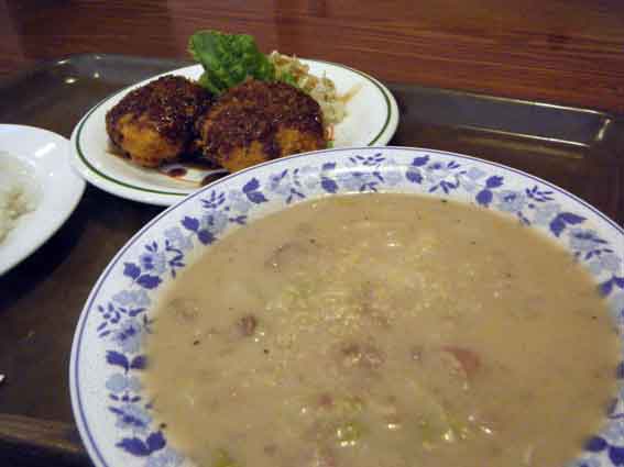 「日替りランチ」は、「豚肉と白菜のクリーム煮」と「さつまいもコロッケ」でした!!