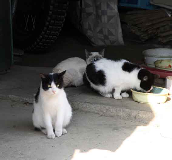 今朝のニャンコは、「ふじこ」と子供の「アズキ」・・・そして最近居ついている「ノラ」です(笑)♪
