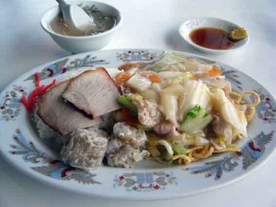 ごはんの上に、「揚げ麺」がのり、その上に、白菜等たっぷりの中華あん!!