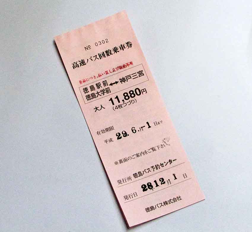四国放送ラジオで当選した、徳島~神戸・三ノ宮の高速バスチケット四枚つづり!!