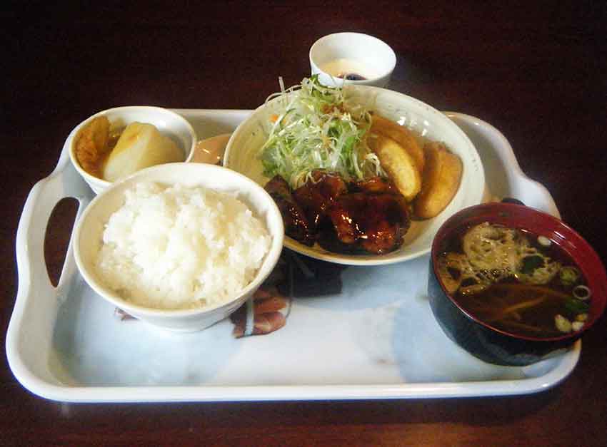 「日替わりランチ」は「照り焼きチキン」と「おでん」、「汁物」の中は「そば」でした!!