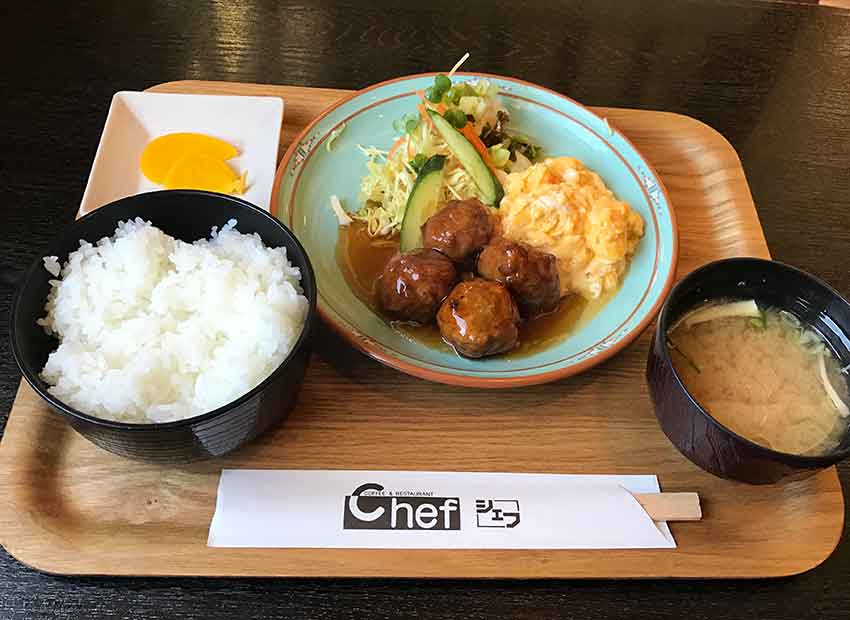 「日替わりランチ」は「肉団子の甘酢あんかけ」と「スクランブルエッグ」でした!!