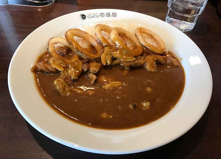 「エビあさりカレー」に「イカリング」をトッピングしています♪