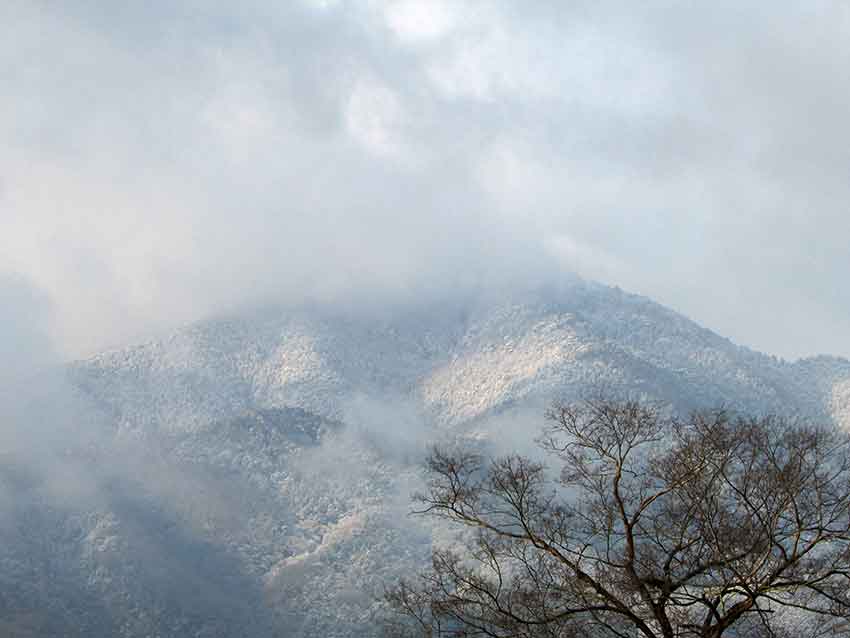 実際は・・・夜に雨が降り、標高の高い高越山に雪が積もったようです!!