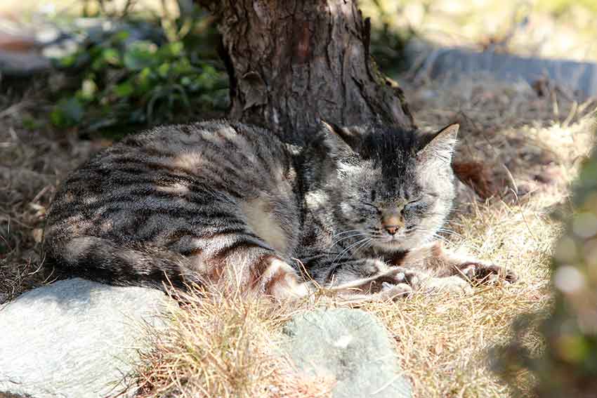 今朝のニャンコは、松の木の下で寝ていたトラ母さんです♪
